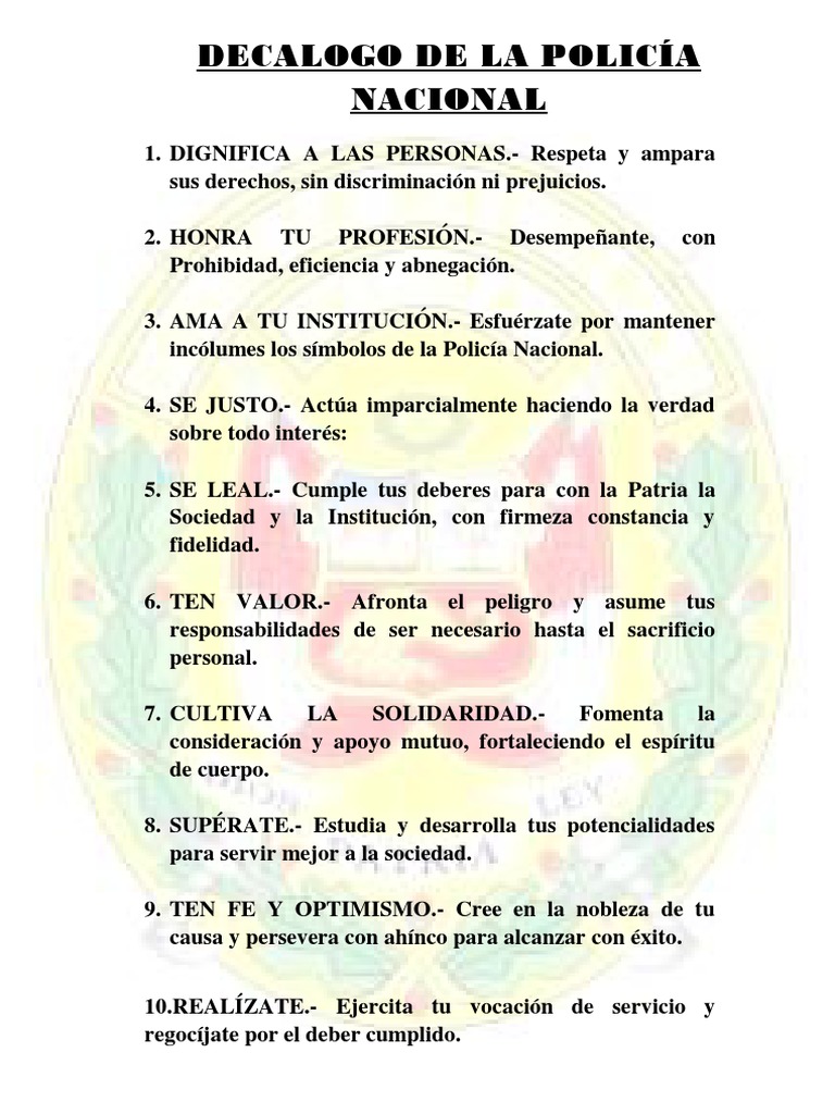 Decalogo De La Policia Nacional Teorias Politicas Seguridad Nacional