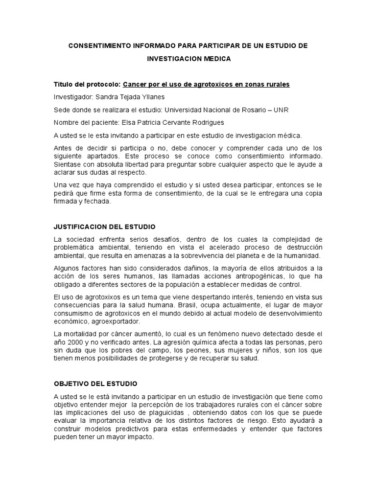 Consentimiento Informado Para Participar De Un Estudio De Consentimiento Informado Cancer