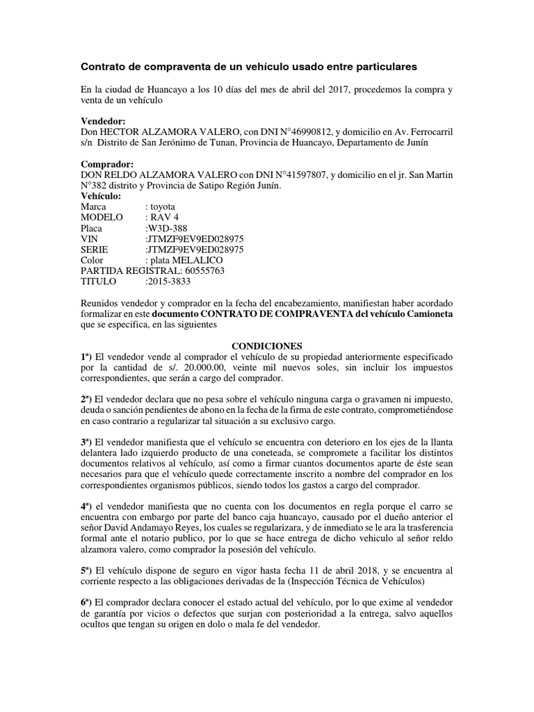 Contrato De Compra Venta De Vehiculo Usado Celebrado Entre Particulares Venta De Vehiculos Usados Venta De Vehiculos Compra Venta De Coches
