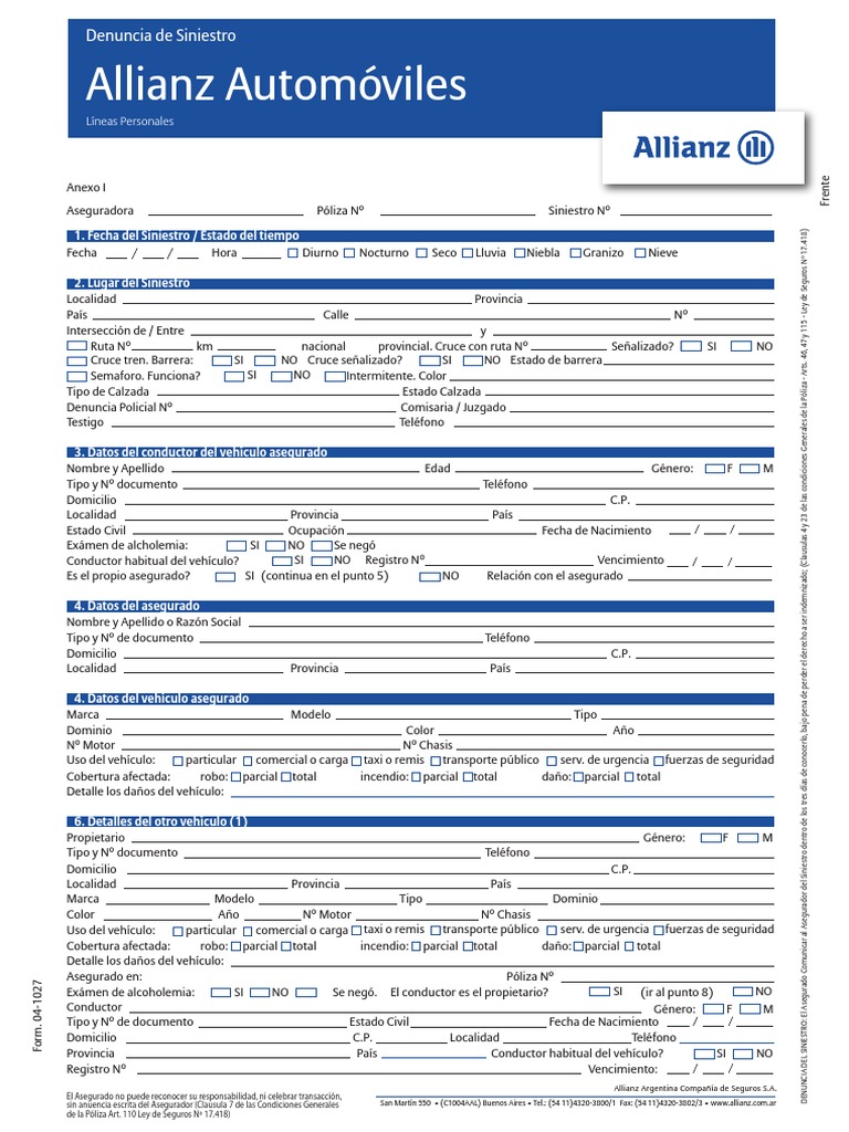Formulario Allianz Siniestro Poliza De Seguros Seguro