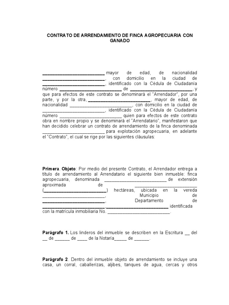 Contrato De Arrendamiento De Finca Agropecuaria Con Ganado Alquiler Derecho Y Economia
