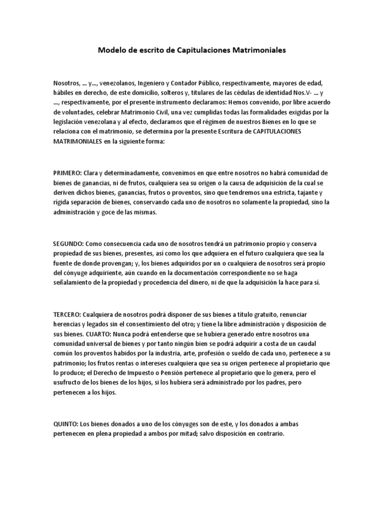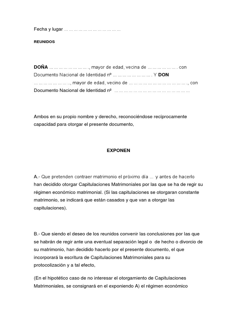 Modelo De Escrito De Capitulaciones Matrimoniales Propiedad Matrimonio
