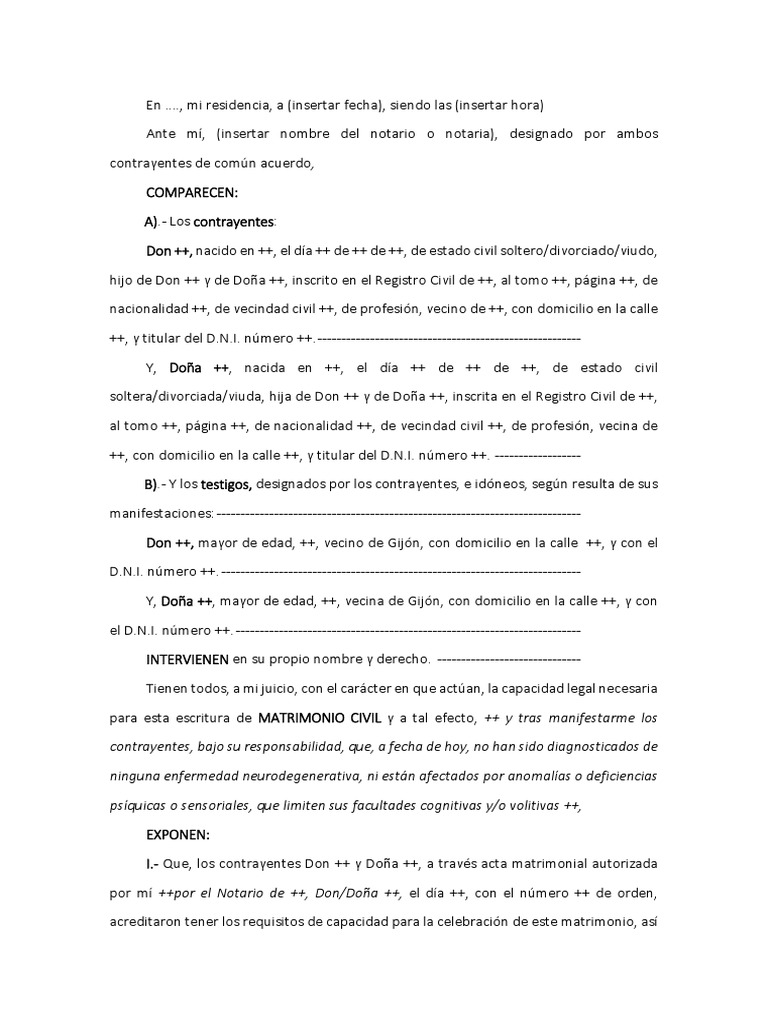 En los casos de separacin legal y divorcio este convenio regulador tiene que. IndiceIntroduccin1- OBJETO DEL ACTA MATRIMONIAL2- TRAMITACIN DEL ACTA MATRIMONIALA COMPETENCIA DEL NOTARIOB REQUERIMIENTO AL NOTARIOC PUBLICACIN DE EDICTOS O PROCLAMASD DILIGENCIA SUSTITUTORIAE OTRAS PRUEBASF AUDIENCIA RESERVADAG FINALIZACIN DEL ACTA. El contrato del amor contrato de prestacin de servicios noviessticos que celebran por una parte _____denominada a partir de ahora como la emparejada quin declara no estar loca y firmar este contrato y por otra _____ denominado.