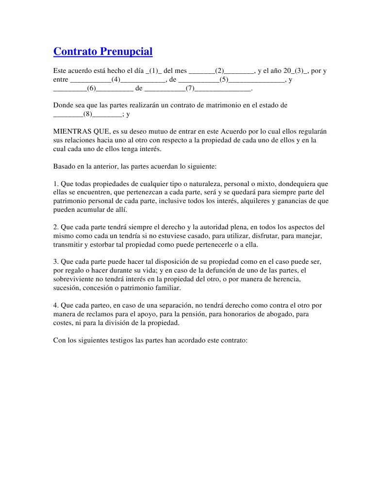 Ahora veamos algunos modelos de plantillas de contratos de matrimonio podrs descargar esta plantilla en formato Word y editarla a tu conveniencia. Este modelo de contrato privado entre cnyuges que se separan tiene como objeto regular los asuntos del mbito familiar que se rompen con la separacin. Modelos de Contrato A continuacin sin intentar constituir formulas sacramentales en afn nicamente de orientar les presentamos una gua rpida de algunos contratos.