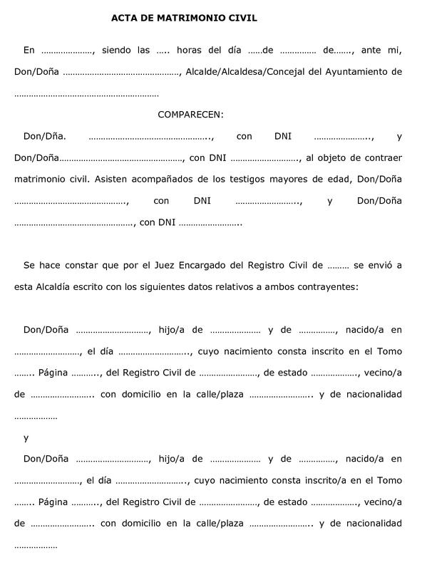 Modelo De Acta De Matrimonio Matrimonio Justicia